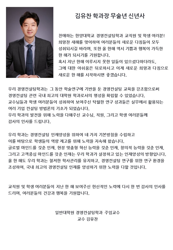 김유찬 학과장 무술년 신년사