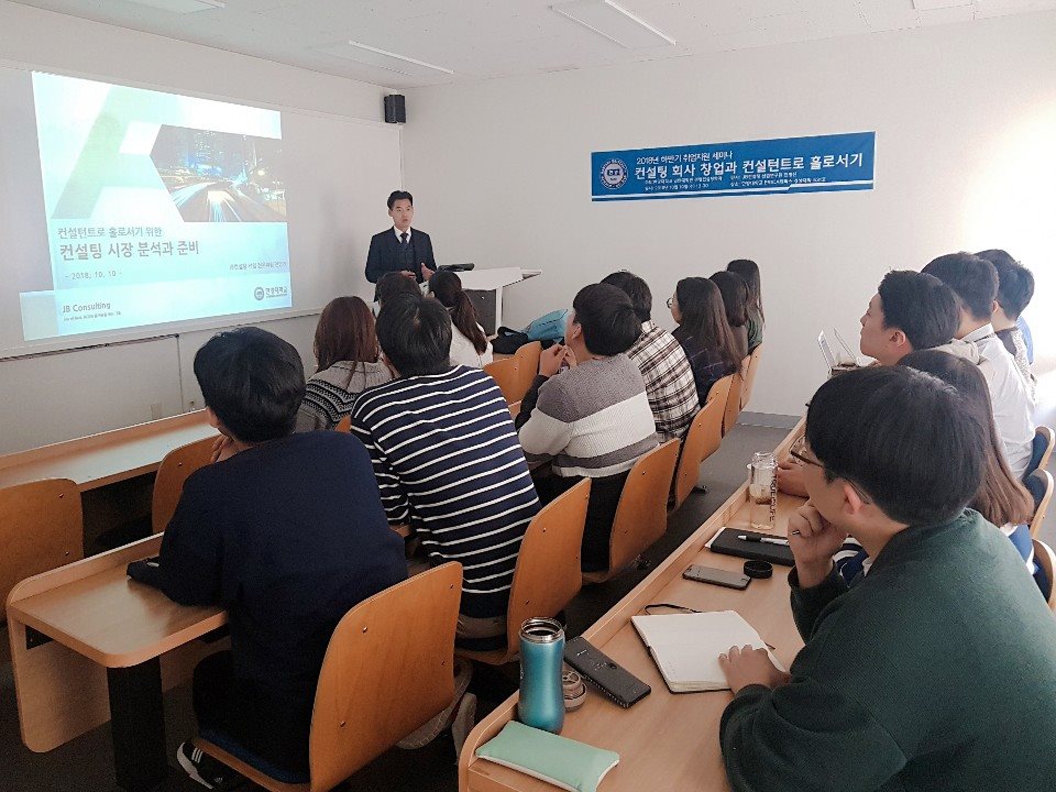 경영컨설팅학과를 졸업한 JB컨설팅 선임연구원 전영진위원님이 강연을 진행하셨습니다.