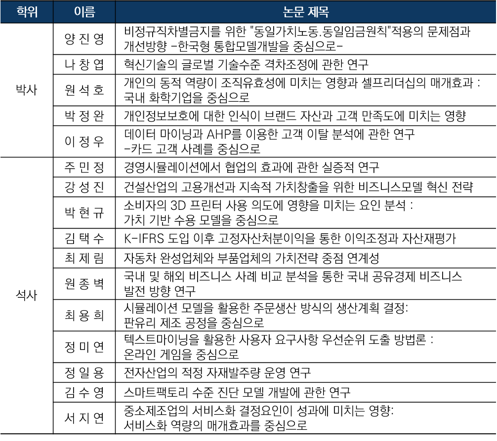 [졸업예정자 및 논문제목]